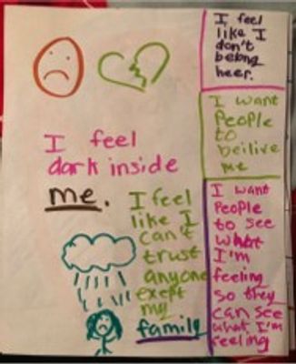 8. When and if they are ready, you can ask them if they are willing to share what they wrote and draw. Let them talk without judging or finding a solution. Be there for them, listen, and hug them if they feel like it.
